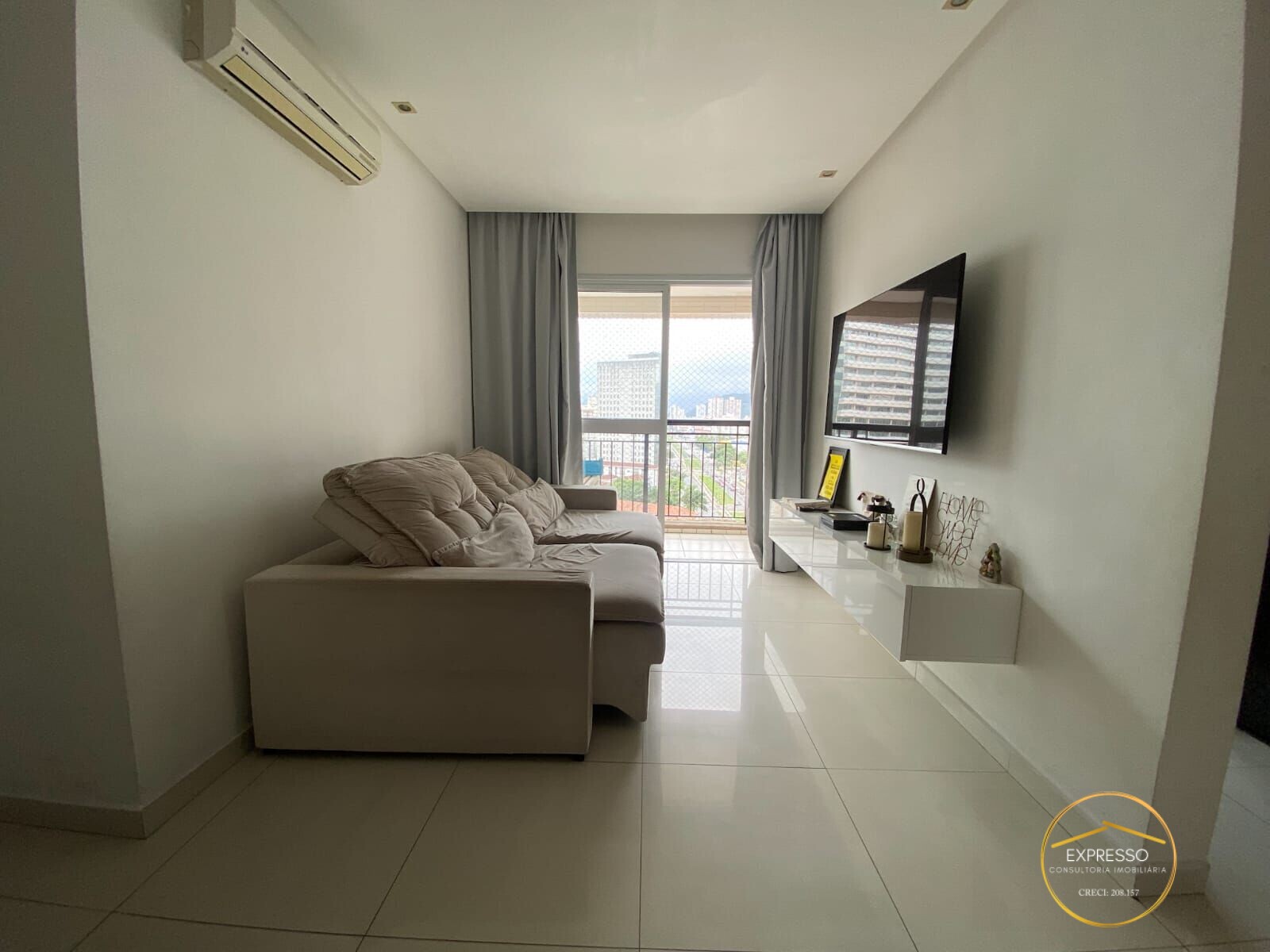 Apartamento possui 2 dormitórios (suíte) com armário embutido, 2 banheiros, 1 vaga de garagem, sala espaçosa, cozinha integrada equipada com eletrodomésticos e armários planejados.