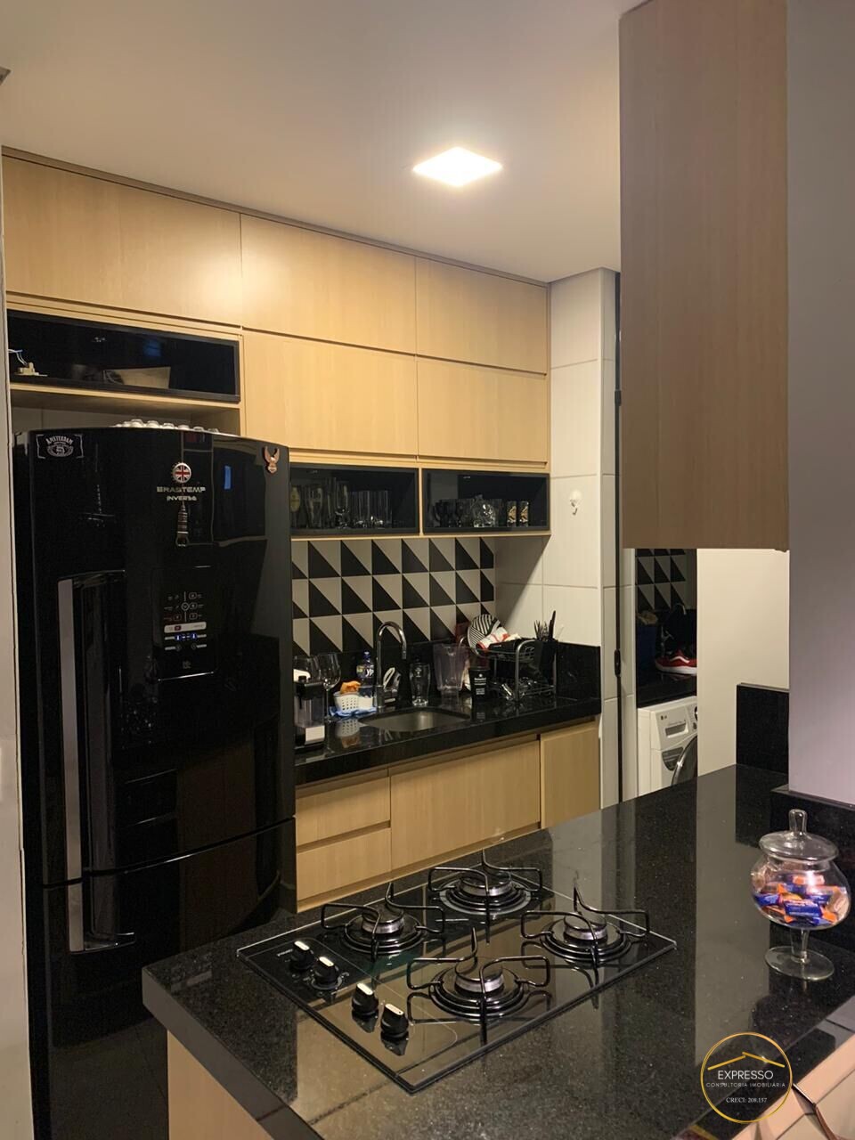 -Cozinha com ilha ,forno e cooktop embutido, em granito preto