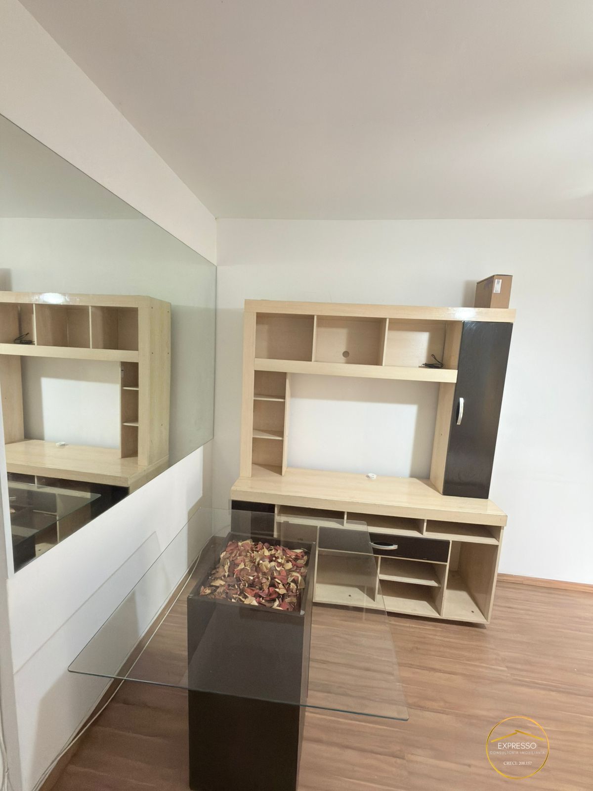 - Apartamento de 46mt² no terceiro andar sendo: 2 Dormitórios com armários e cortina, Cozinha com armário, Lavanderia, Banheiro, Sala de Estar com estante e mesa de vidro e uma vaga de garagem descoberta.
