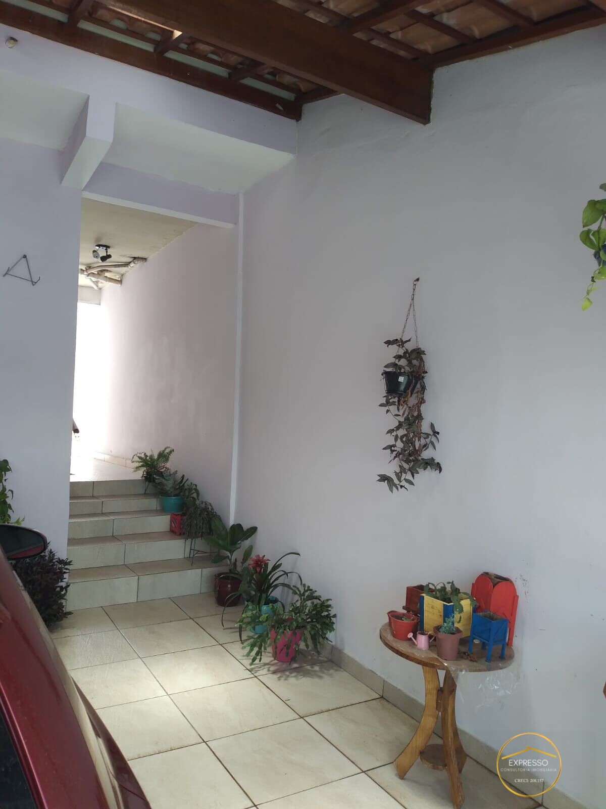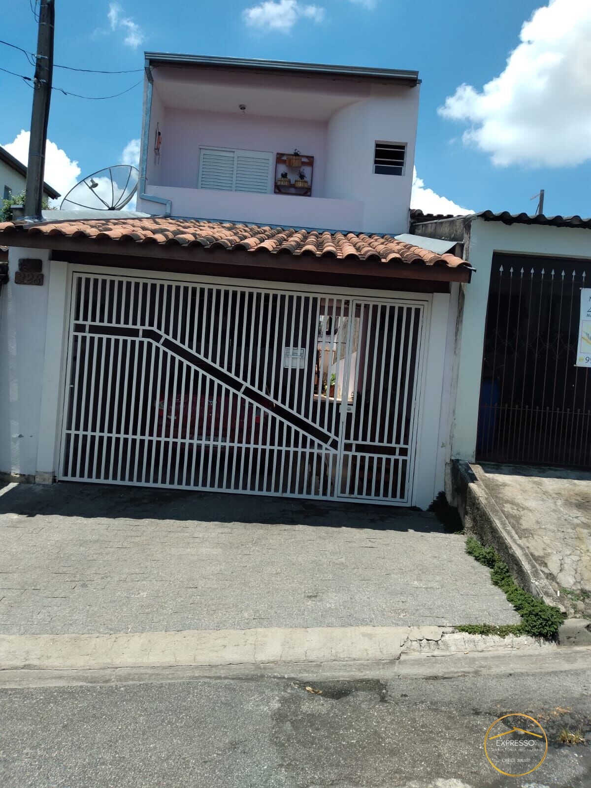 Na parte inferior 01 banheiro, sala de estar e jantar, cozinha, lavanderia e 02 vagas cobertas.