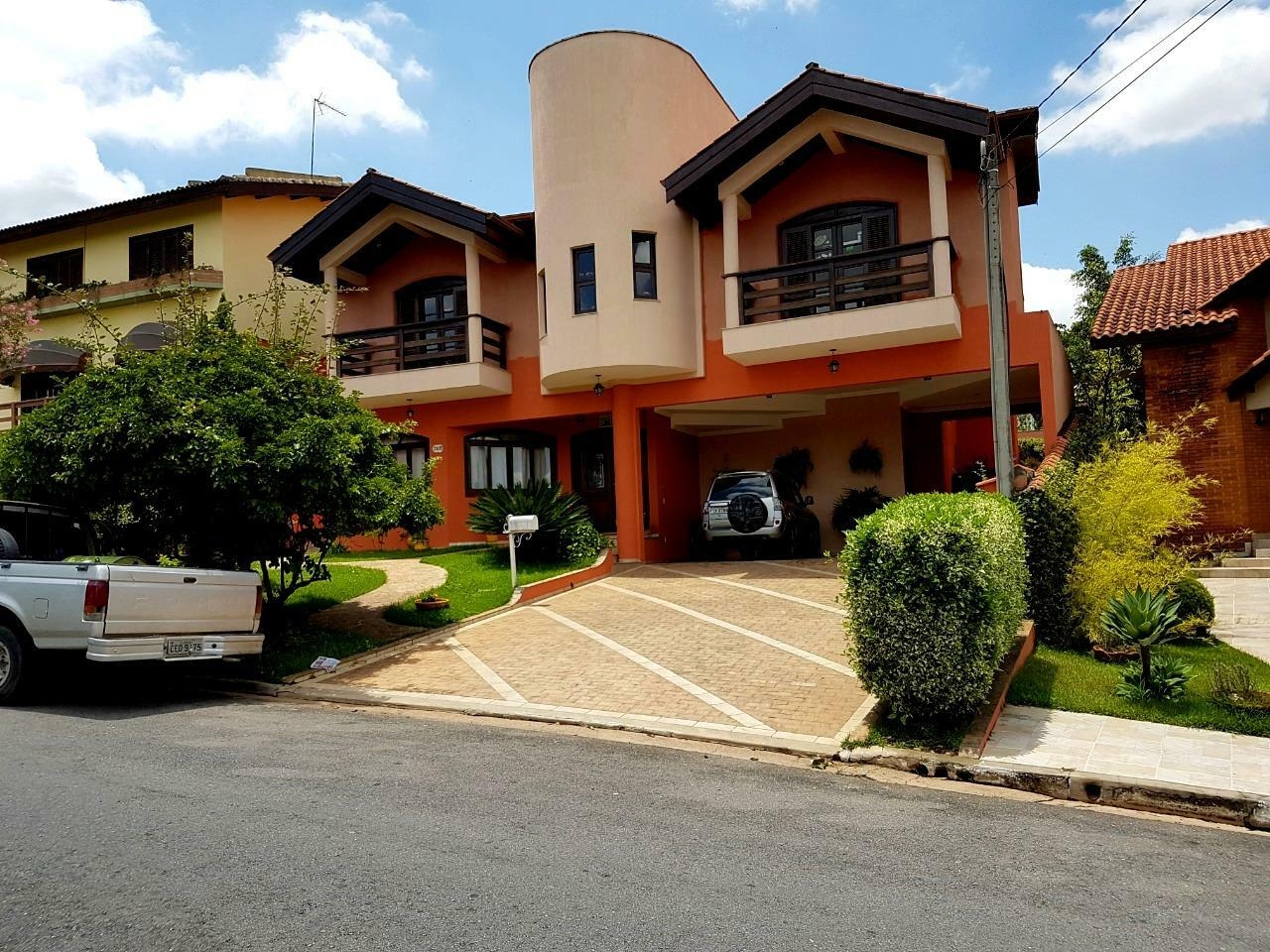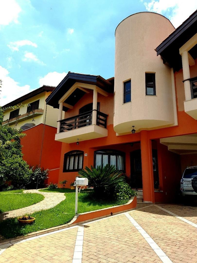 Linda casa com ** garagem coberta para 3 carros, sendo que cabe mais 3 carros na rampa, 2 suítes superiores com vista pra frente uma varanda com vista para a área verde, sendo que entre as duas tem uma pequena sala, 1 suite máster com closet com piso de madeira e um banheiro com banheira de hidromassagem, 3 salas, sendo uma de visita na parte de baixo da casa, e 1 de TV e outra de jantar na parte de cima, 1 quarto de hospede com lavabo próximo, cozinha grande toda com armário embutido e janela Bay window e outra janela do outro lado e uma dispensa de alimentos com prateleiras, área de lavanderia com acesso pela cozinha e dá saída para o corredor lateral e para o fundo da casa, área de churrasqueira, com churrasqueira, pia e banheiro fora, Jardim na volta inteira da casa, com calçadinha toda com piso.