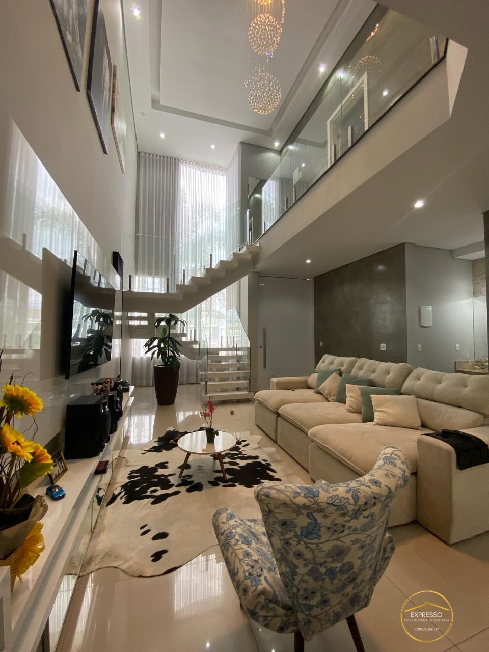 3 dormitorios sendo uma suíte master com banheira closet, dois quartos com planejado, escritório,lavabo, cozinha sala de jantar e tv integrada ,lavanderia ,gourmet e garagem pra quatro carros sendo duas coberto .