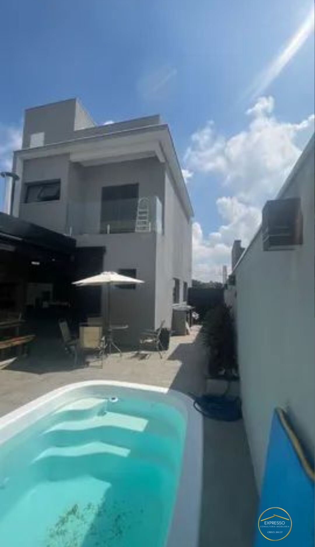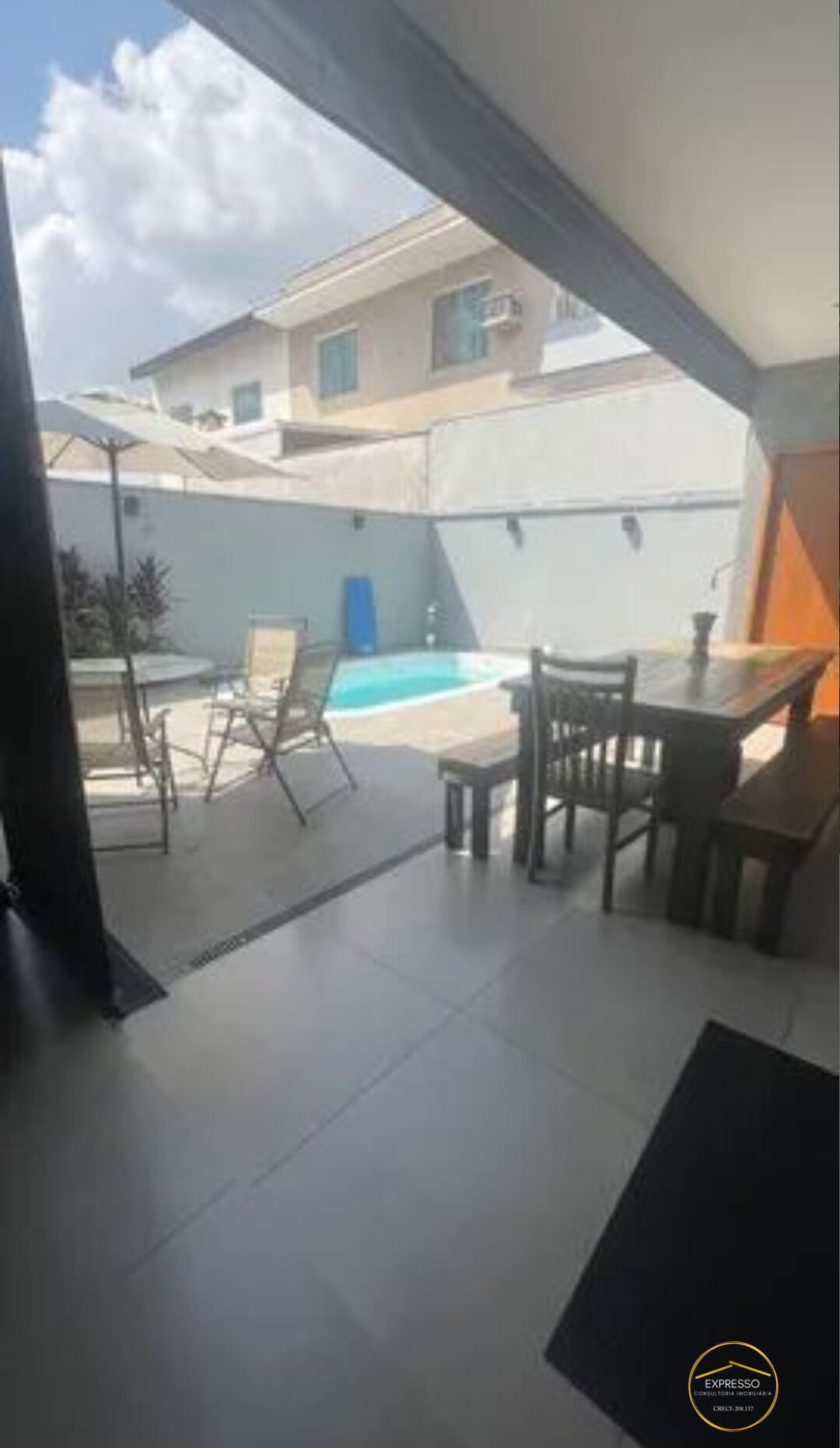 - Espaço gourmet com banheiro, churrasqueira tipo parrilla e piscina