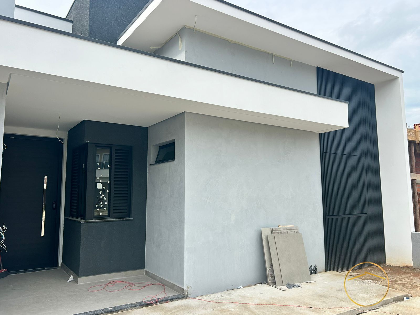 Revestimentos - Porcelanato na cor cimento queimado de 90x90 em toda área interna; Banheiros com porcelanato portobelo 80x80 Nichos dos banheiros minimalista com acabamento 45graus; Revestimento dos quartls vinílico para melhor conforto térmico.