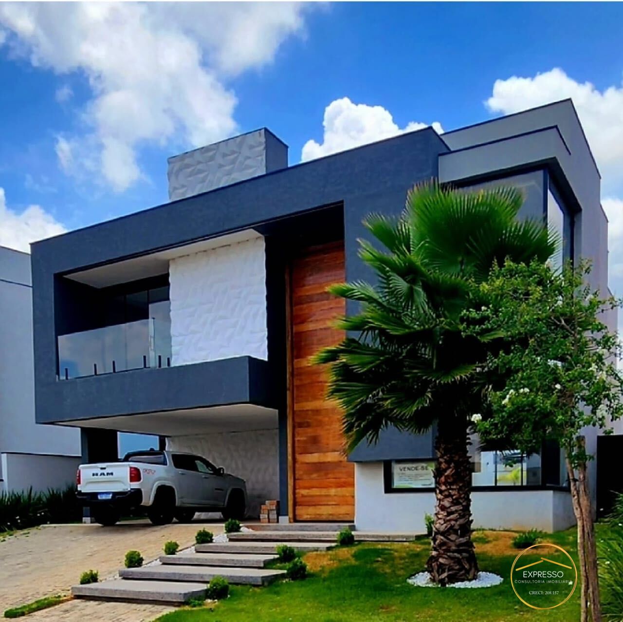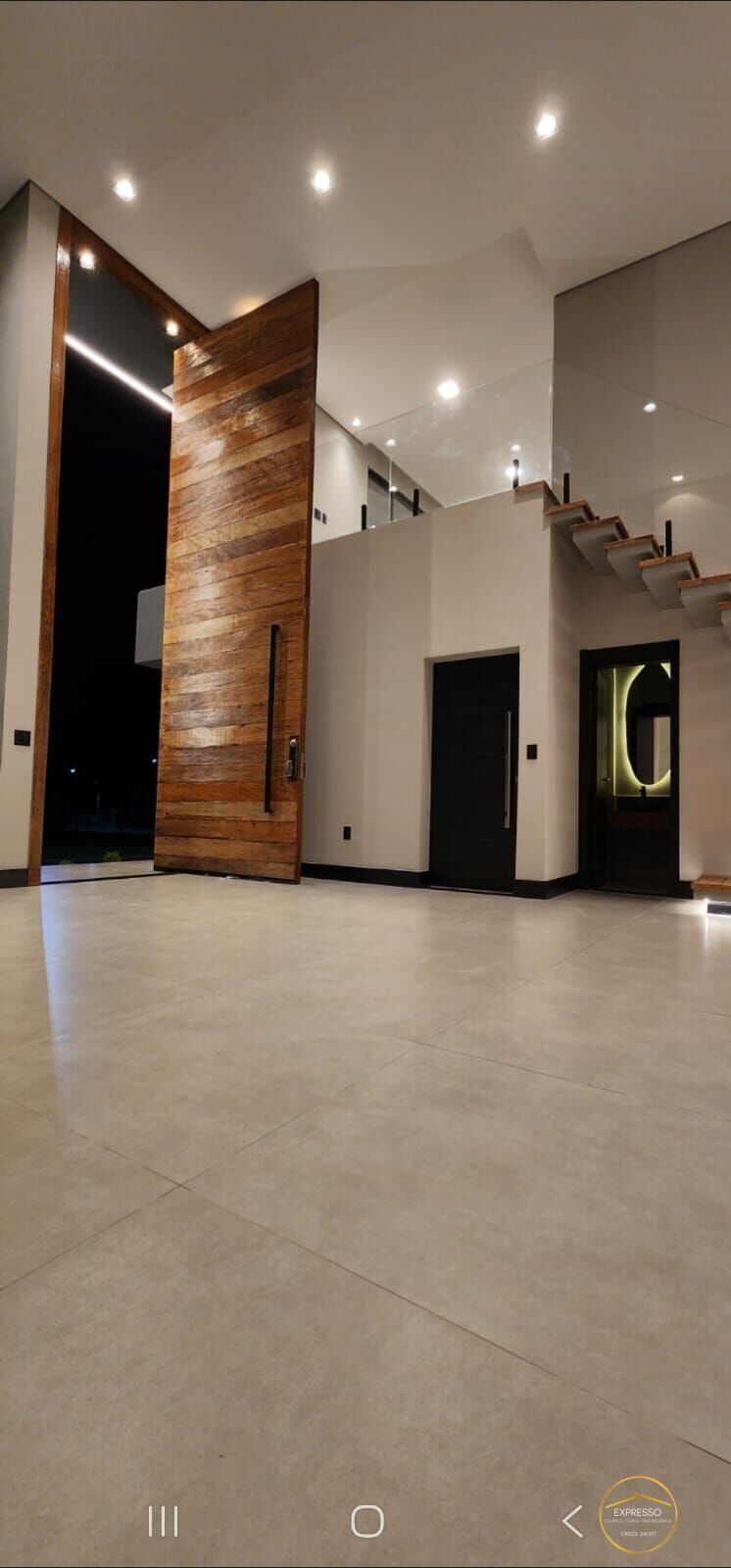 - Casa térrea de 313 mt² com pé direito duplo (6 metros de altura), mezanino para escritório e sala, 3 suítes sendo uma master com closet e banheira, depósito, área gourmet, piscina com raia de 10 metros,